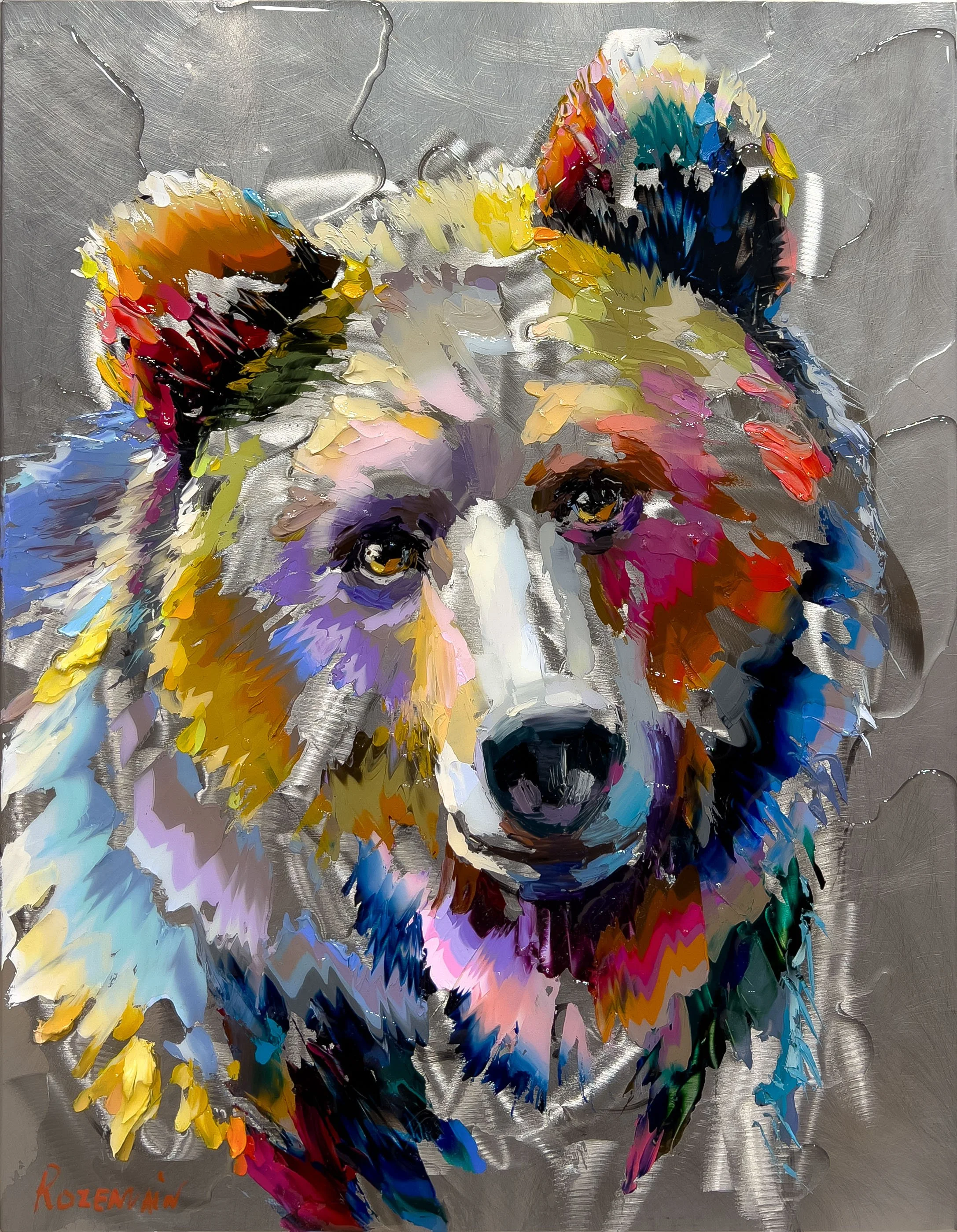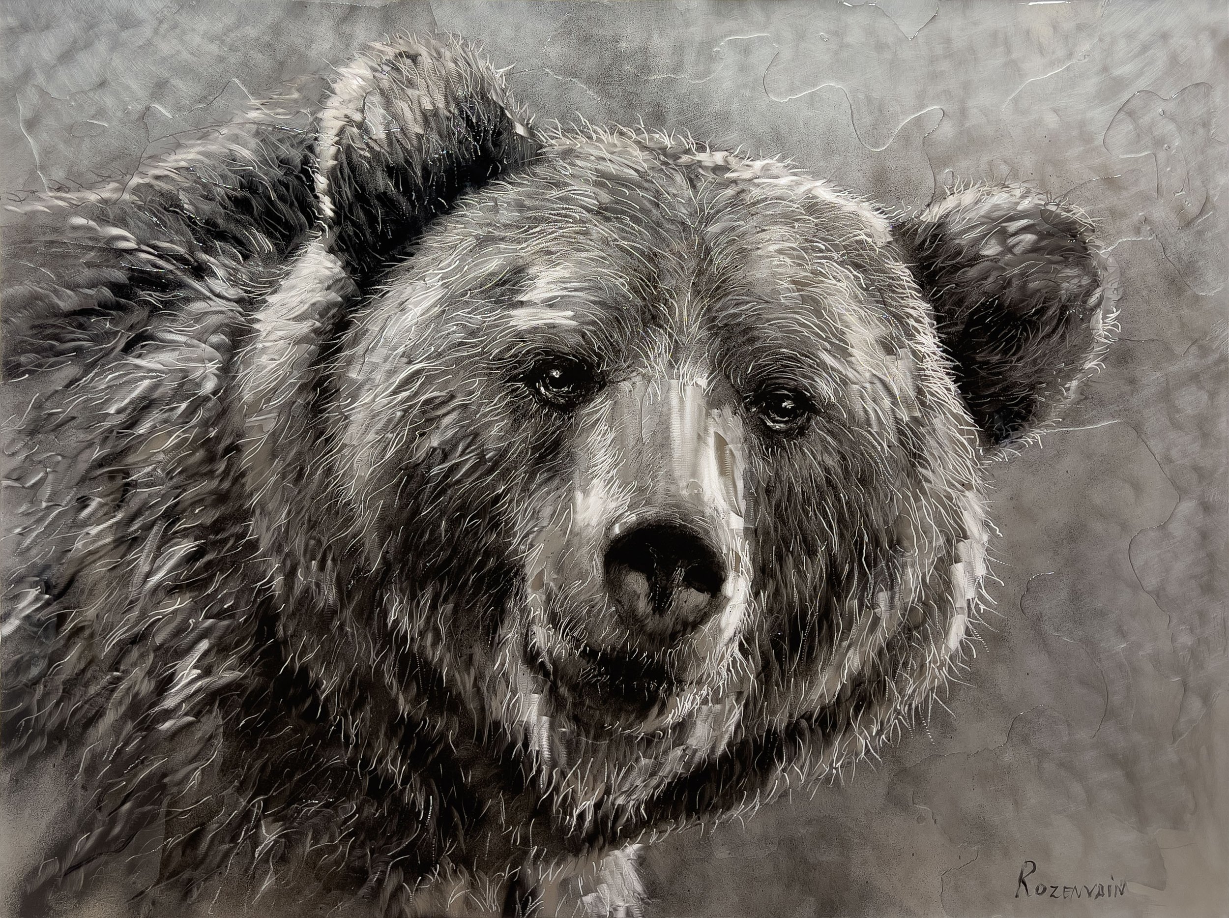 'A Bear's Look' - Oil and resin on engraved stainless steel - 36 x 48 in