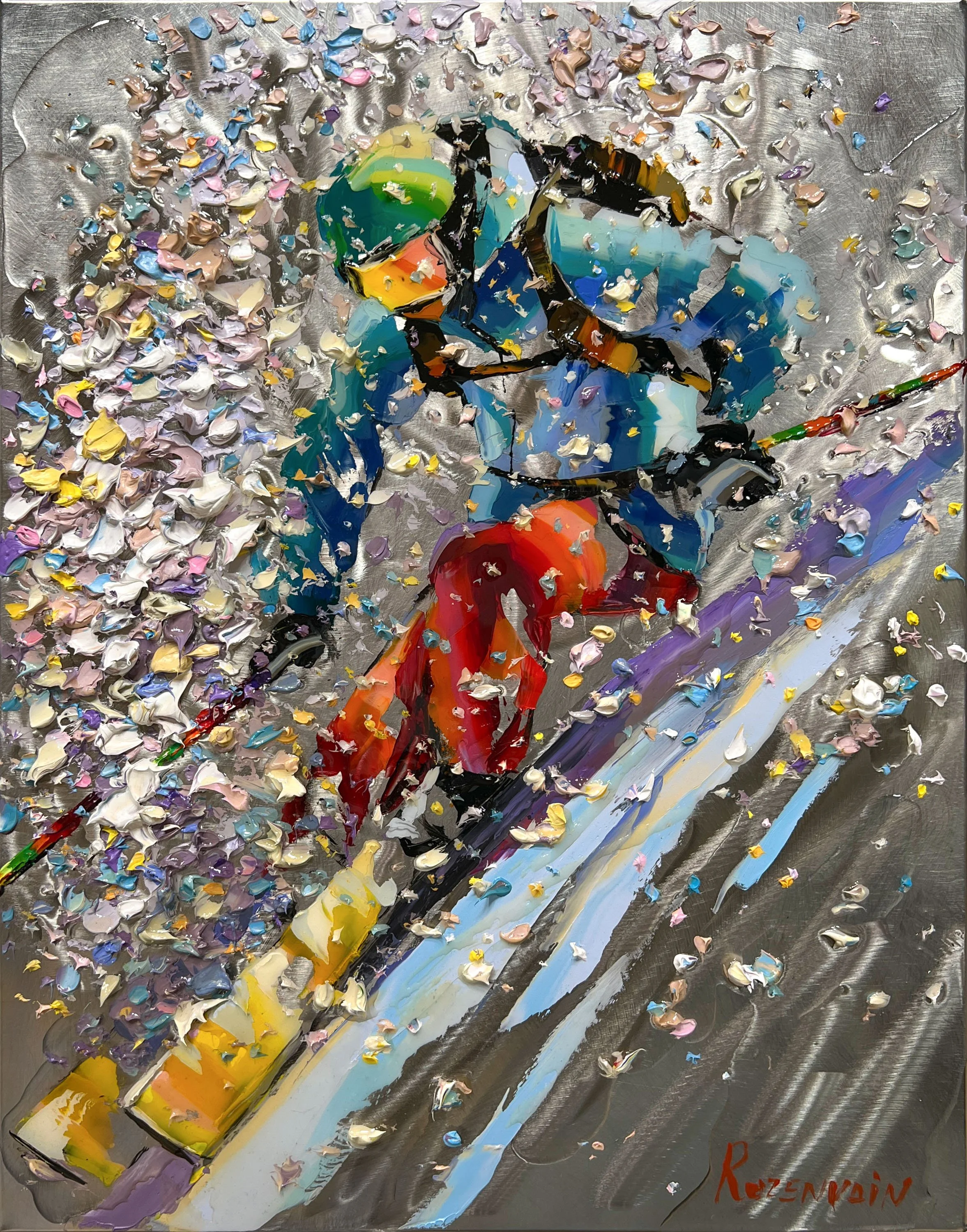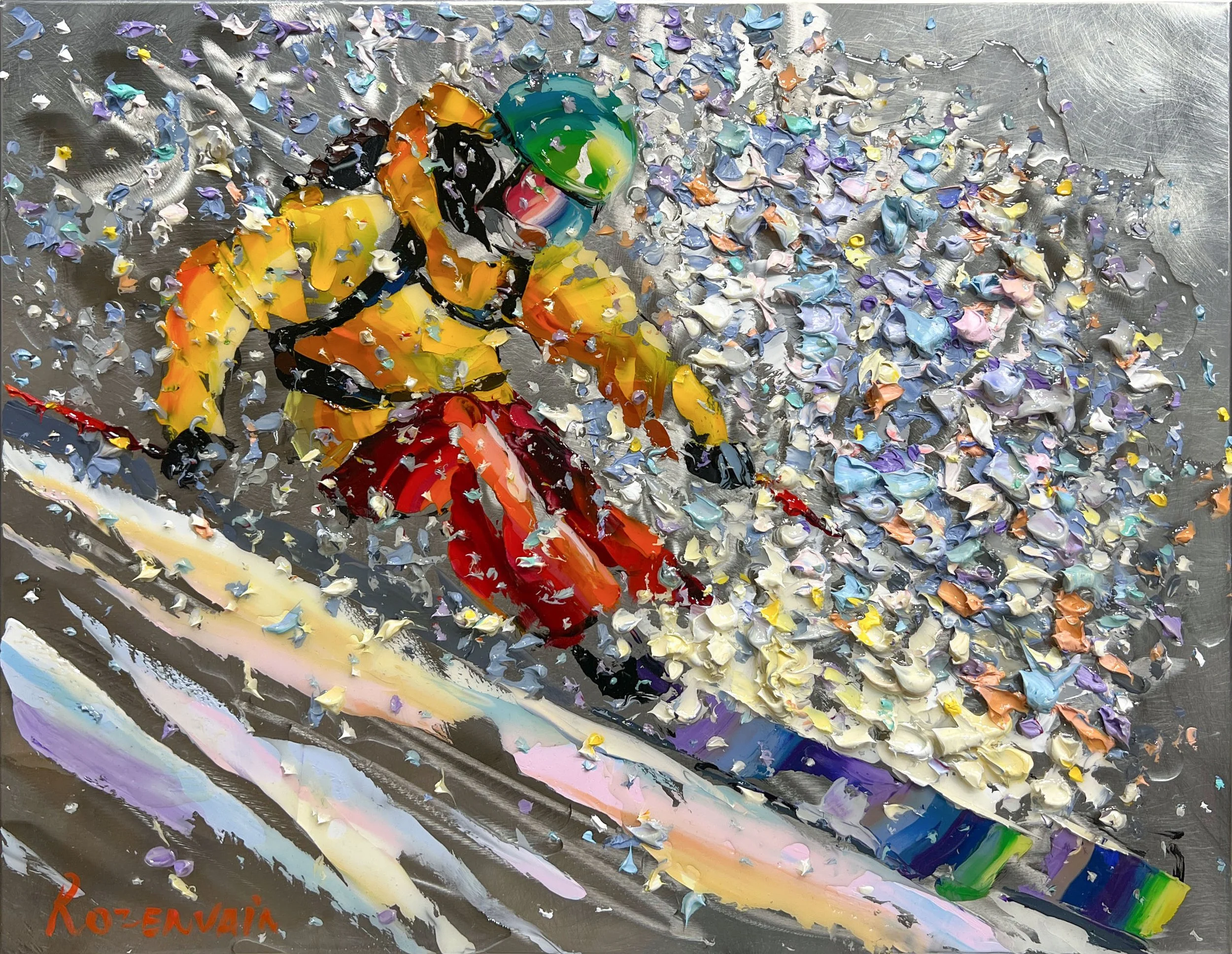 'Exciting Descent' - Oil and resin on engraved stainless steel - 18 x 14 in